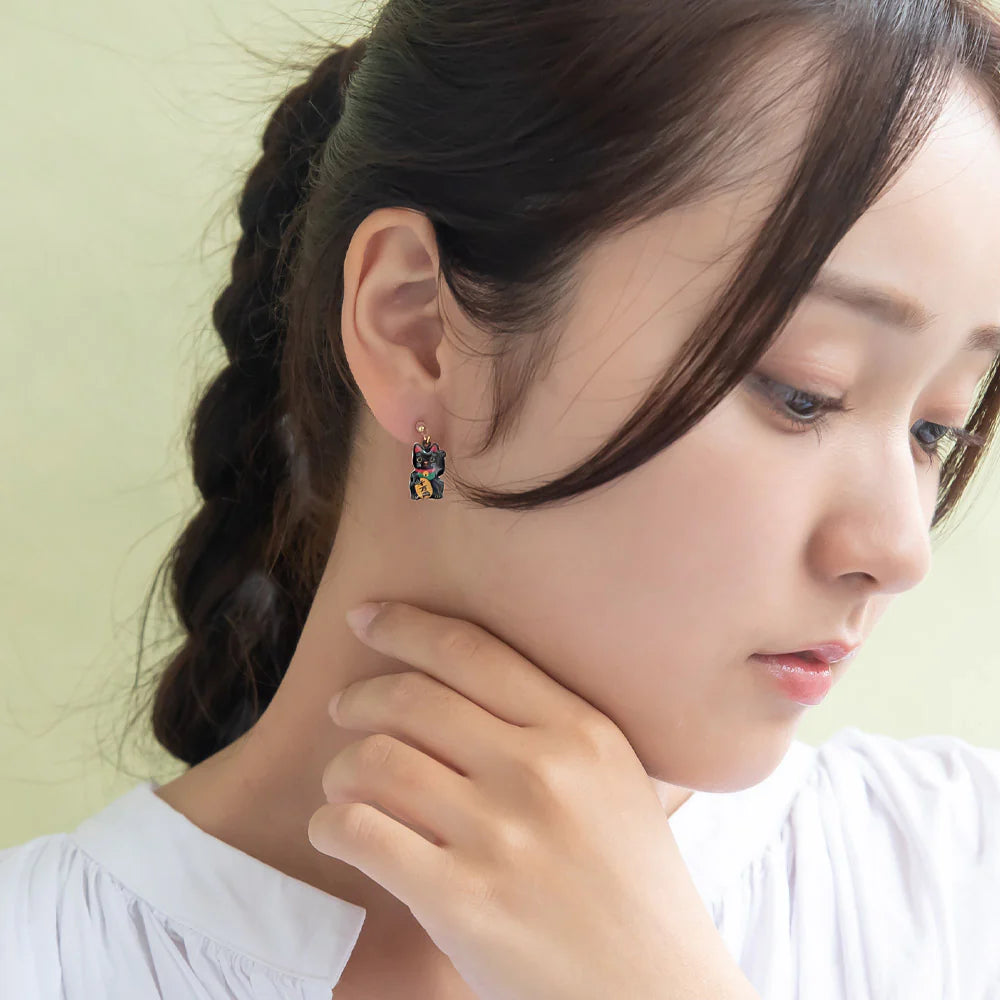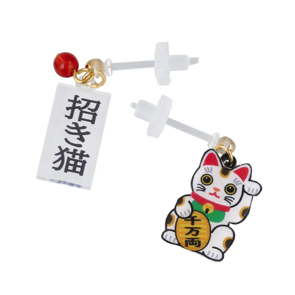 Maneki Neko Asymmetrical Plastic Earrings